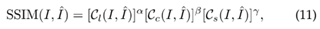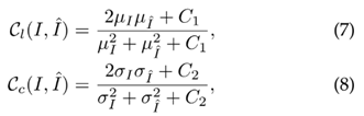 각 이미지들의 밝기와 대비를 이용하여 아래 $C_l(I,\hat{I})$과 $C_c(I,\hat{I})$을 나타낸다.