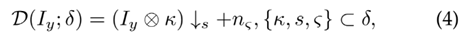 단순히 down-sampling이 아닌 blur kernel $\kappa$를 이미지와 컨볼루션한 후에 down-samping하고, 추가적으로 Gaussian noise를 첨가하는 방법(수식 4)도 있으며, 이 방법이 현실에서 나타나는 LR 이미지와 더 가까우며, SR알고리즘을 개발하는데 더 유리하다.